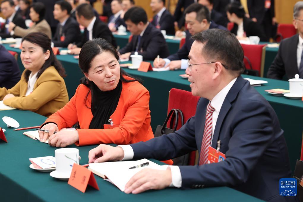 3月5日,代表們?cè)诮K代表團(tuán)全體會(huì)議前交談。