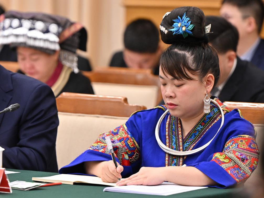 3月6日,全國人大代表在十四屆全國人大三次會議貴州代表團開放團組會議上聽會。