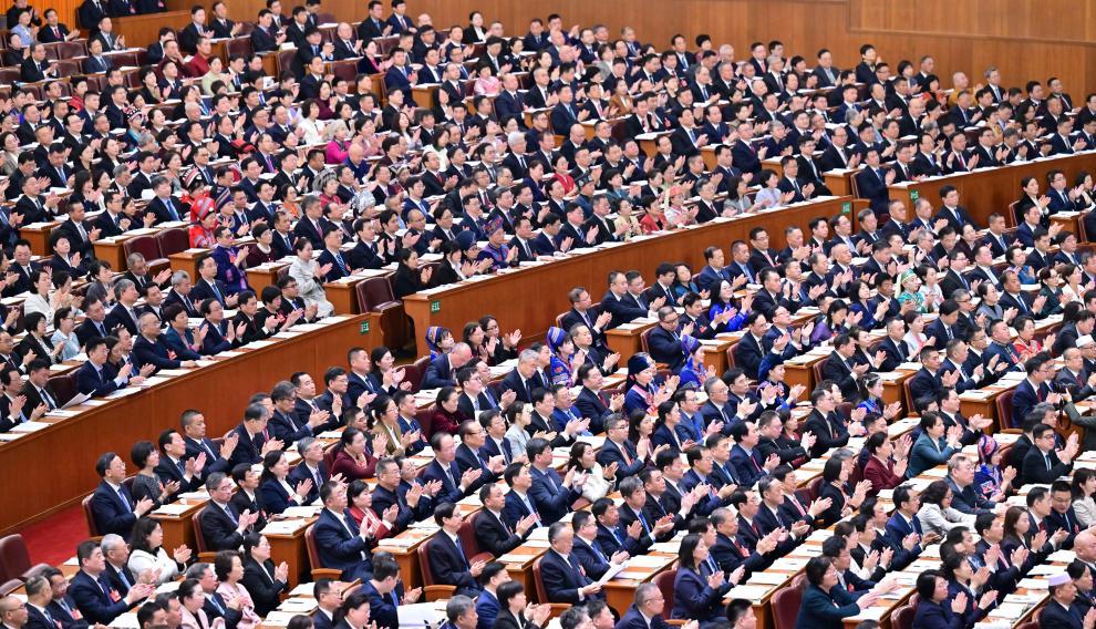 3月8日,十四屆全國人大三次會議在北京人民大會堂舉行第二次全體會議。